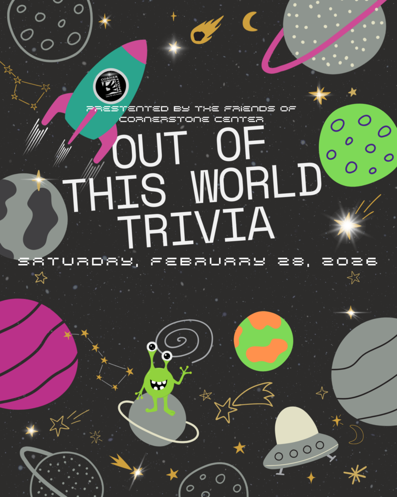 Blast off into a night where the universe is your playground with Out of This World Trivia, hosted by Friends of Cornerstone Center! From dazzling galaxies to distant planets, black holes of mystery to constellations of knowledge, each question will launch you into a new adventure. And don’t worry, this isn’t just for space buffs. Expect cosmic curveballs inspired by today’s brightest personalities in entertainment and maybe even a little astrological fun to see if the planets are aligned in your favor.